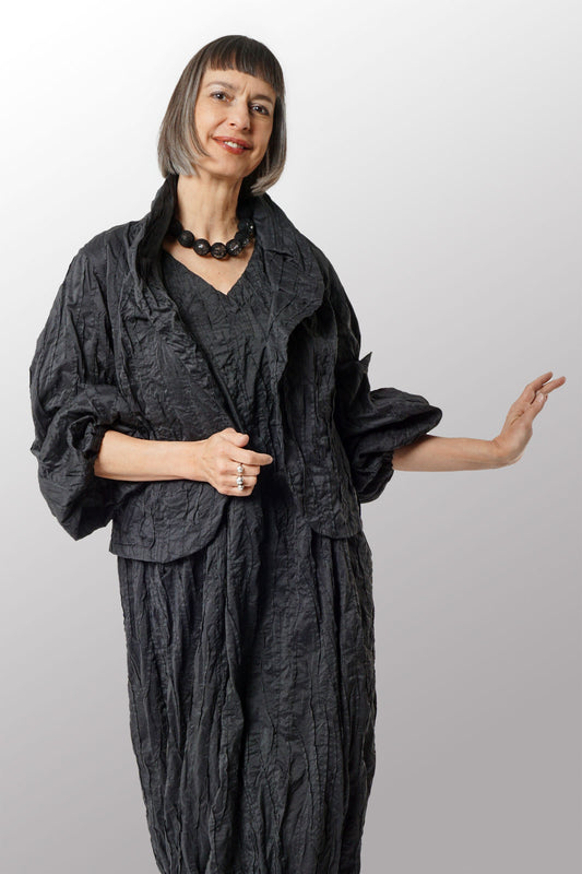 DYED COTTON SILK HEAVY VOILE RANDOM TUCK PUFF SLV. JACKET - dr1077-blk -