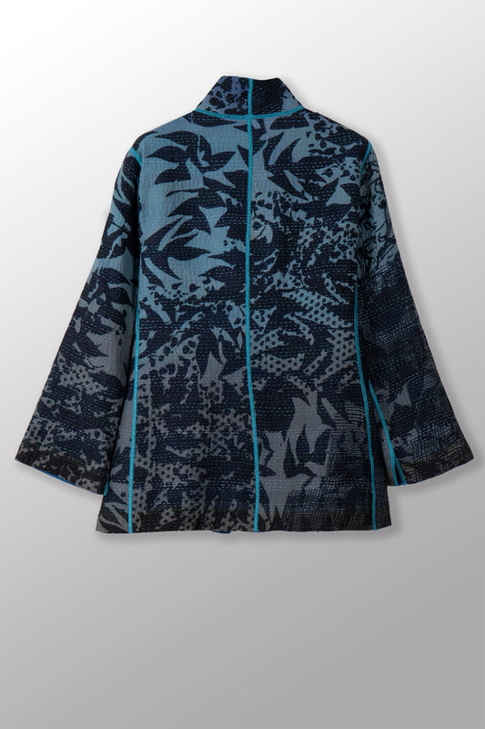MONOTONE TWILIGHT PRINT KANTHA A-LINE JKT - tp4003-blu -