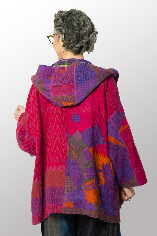 VINTAGE COTTON KANTHA HOODIE PONCHO - cv4064-0028a -