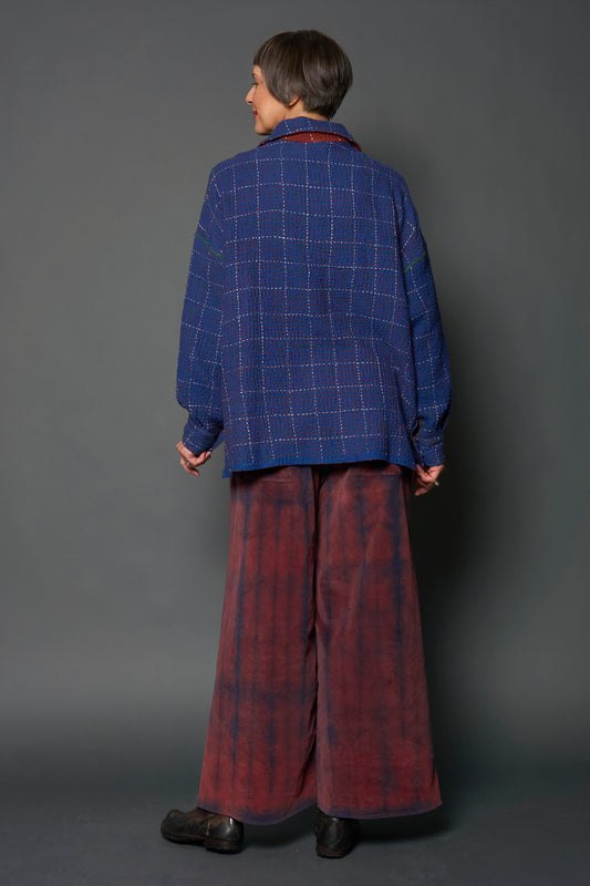 WOOL WAFFLE KANTHA RELAXED SHIRT JACKET - ww3j105-blu -
