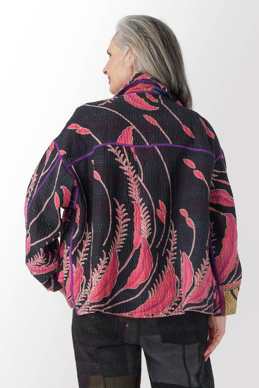 NIGHT FLOWERS KANTHA LAPELED SHORT JACKET - nl4081-prp -