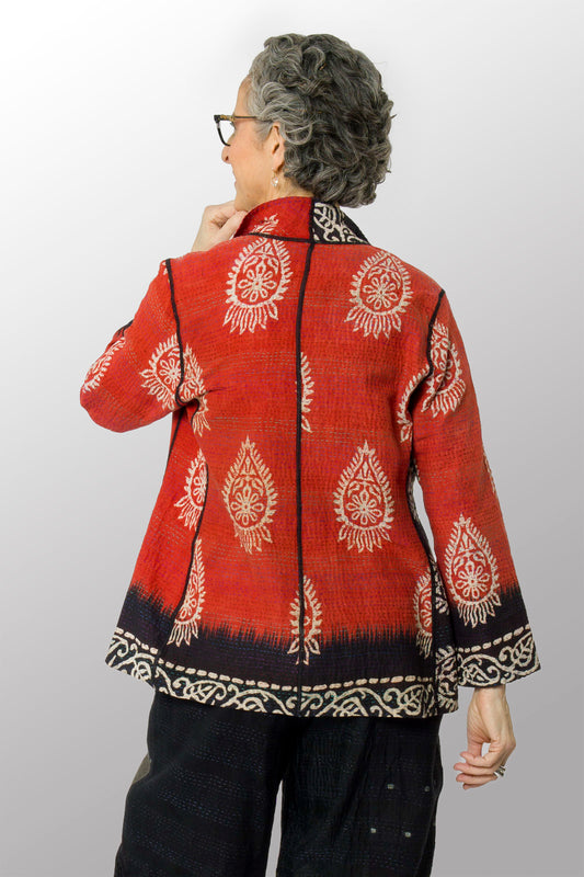 VINTAGE COTTON KANTHA A-LINE SHORT JKT - cv4019-0017a -