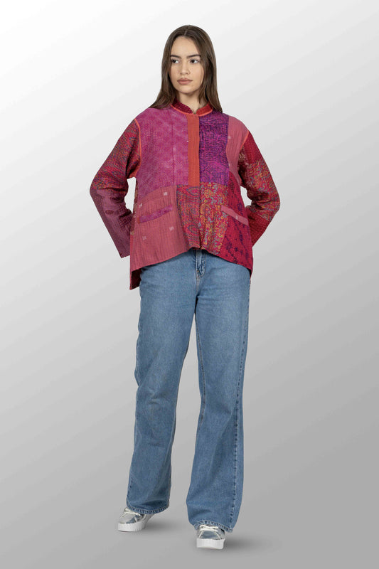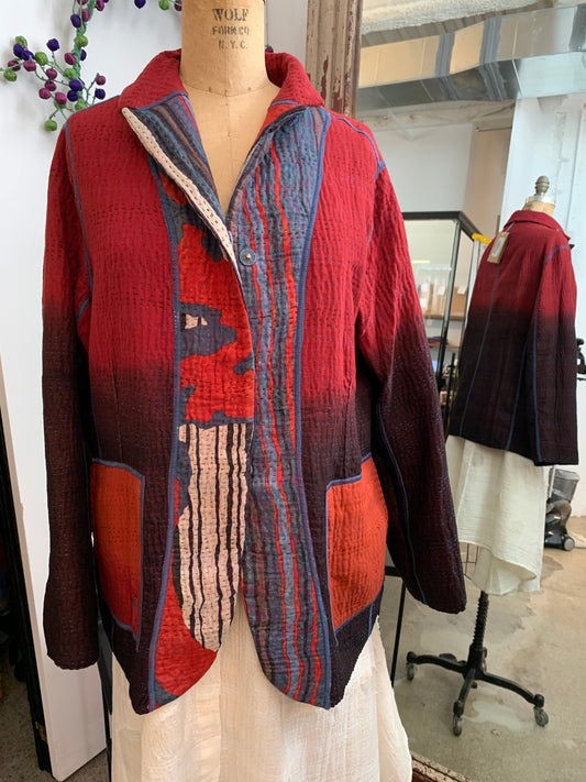 OMBRE PATCHED KANTHA POCKET JKT - op4002-red -