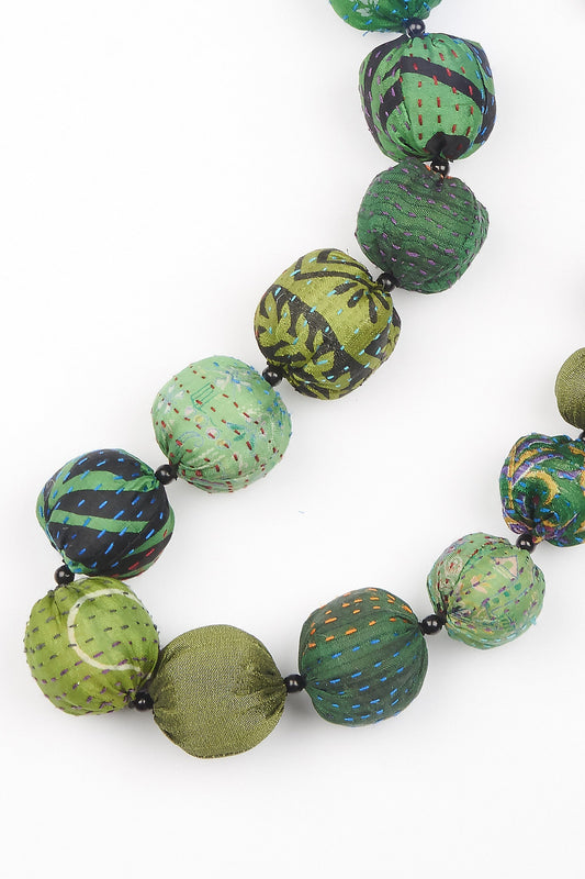VINTAGE SILK KANTHA NUTS MEDIUM NECKLACE - sv2701-grn -