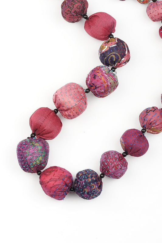 VINTAGE SILK KANTHA NUTS MEDIUM NECKLACE - sv2701-pik -