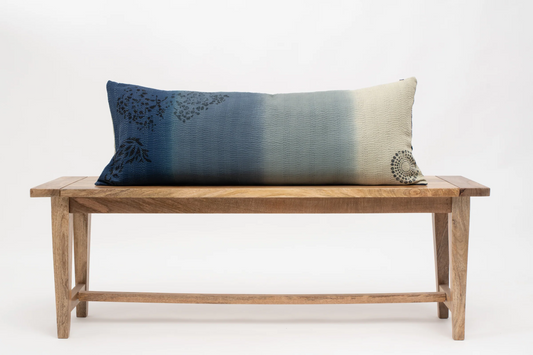 Vintage Fray Patch & Ombre Kantha Lumber Pillows -Indigo -