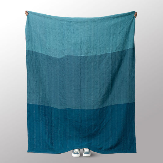 Mosaic Fray Handmade Vintage Kantha Throw -Cornflower -