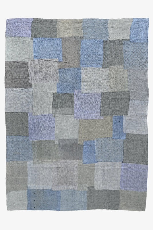 Mosaic Fray Handmade Vintage Kantha Throw -Hydrangea-