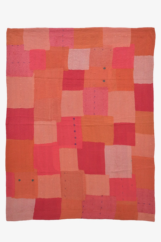 Mosaic Fray Handmade Vintage Kantha Throw -Carrots -
