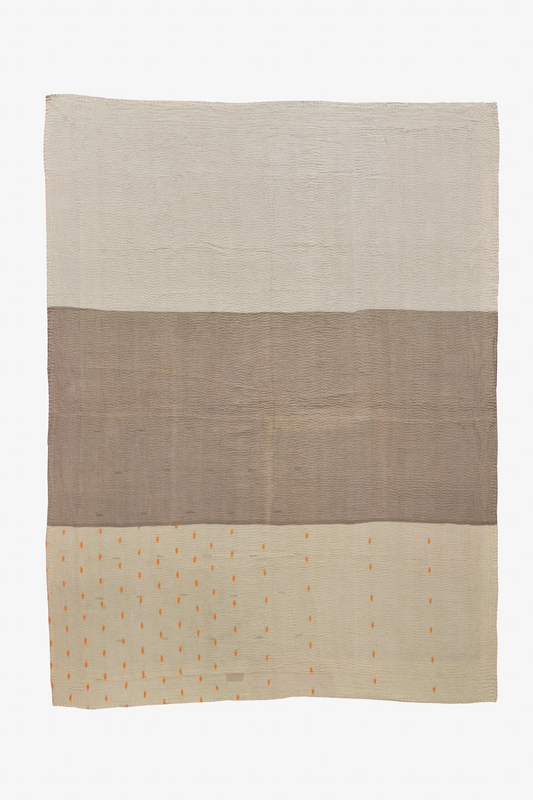 Mosaic Fray Handmade Vintage Kantha Throw -Taupe -