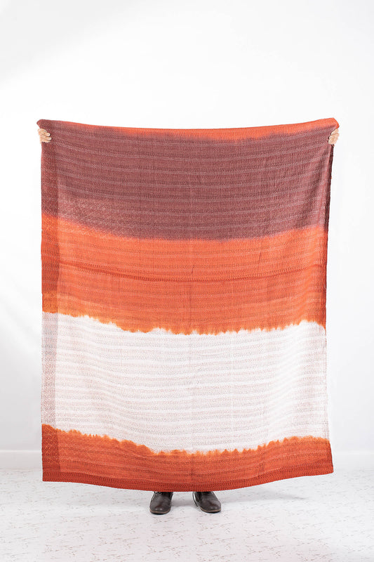 Vintage Fray Patch & Ombre Kantha Throw -Chocolate -