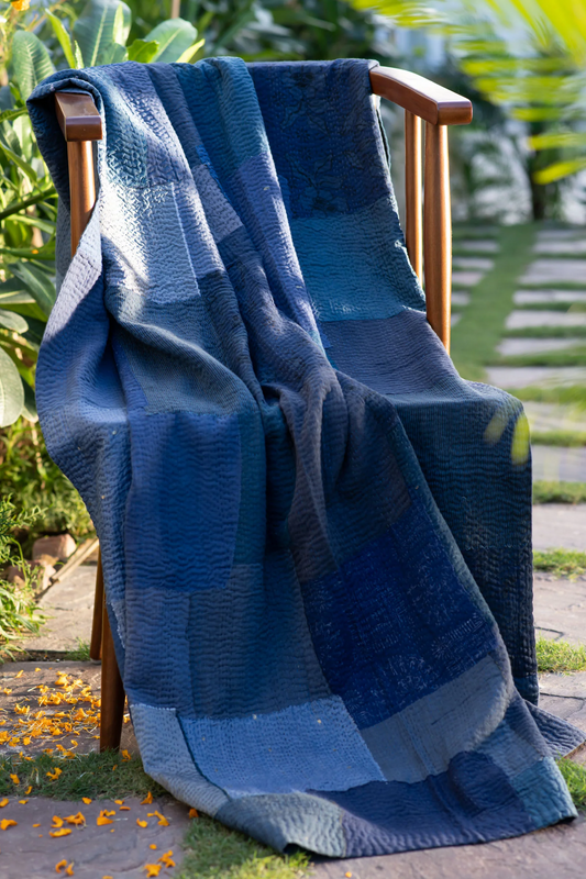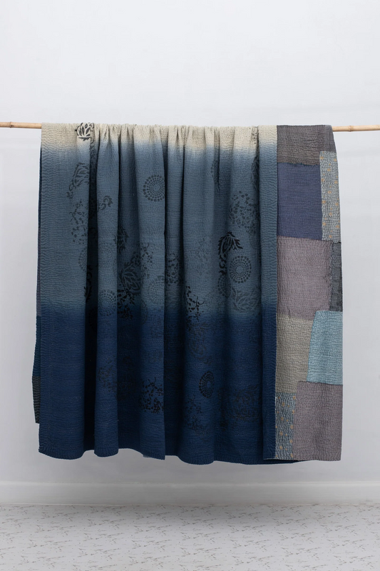 Vintage Fray Patch & Ombre Kantha Throw -Navy -