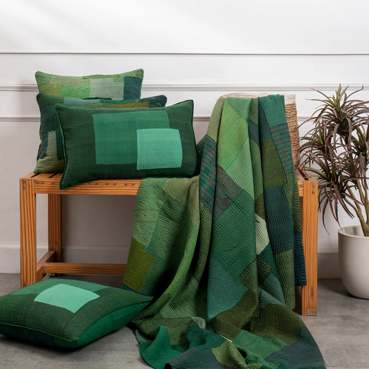Mosaic Fray Handmade Vintage Kantha Throw -Mushroom -