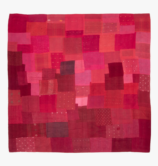 Monotone Ikat Handmade Vintage Kantha Throw -Monotone Red -