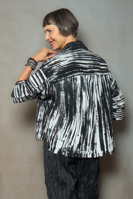 CAMBRIC TIE DYE RIPPLE TUCK HALF SLV. CROPPED JACKET - tr1j104-blk -