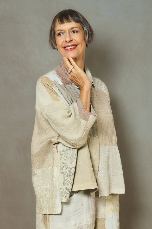 DUCK SUN DYE WITH PATCH KANTHA SLEEVE JACKET - us2090-ivy -