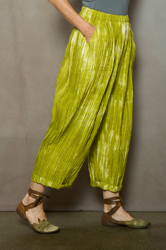 CAMBRIC TIE DYE RIPPLE TUCK BARREL PANTS - tr1641-lim -