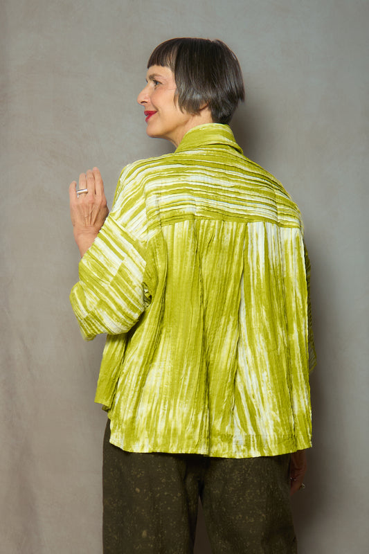 CAMBRIC TIE DYE RIPPLE TUCK HALF SLV. CROPPED JACKET - tr1j104-lim -