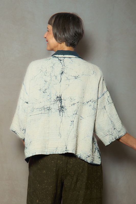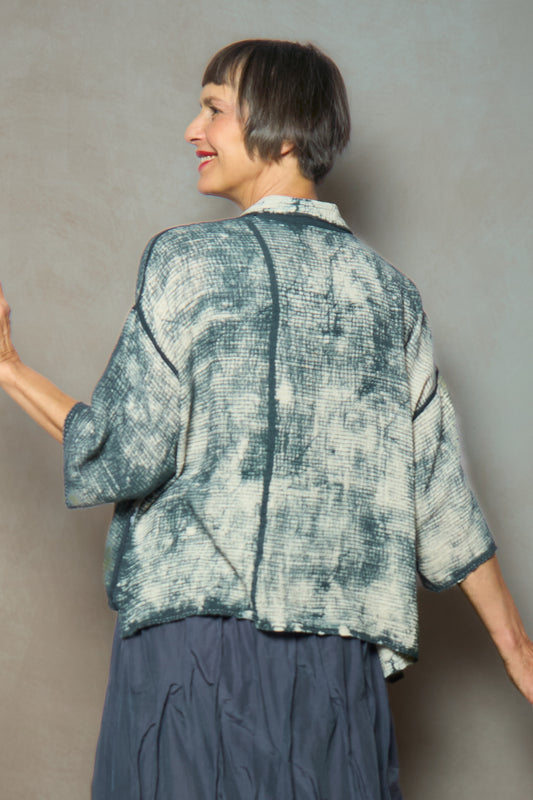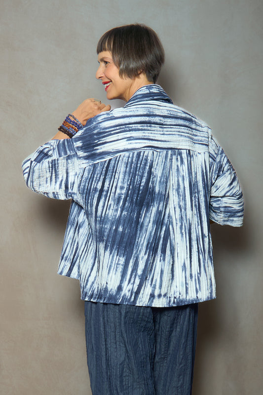 CAMBRIC TIE DYE RIPPLE TUCK HALF SLV. CROPPED JACKET - tr1j104-nvy -