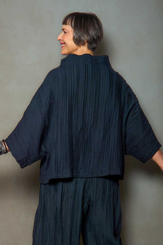 RIPPLE TUCK SOLID HALF SLV. CROPPED JACKET - trs1j10-cbl -