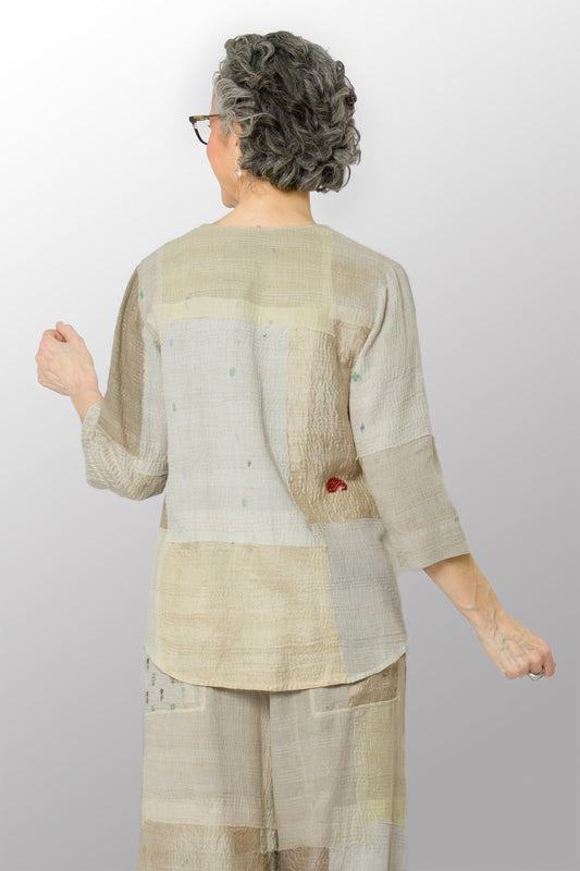 MOSAIC FRAY PATCH KANTHA KURTA TOP - zb2586-ivy -