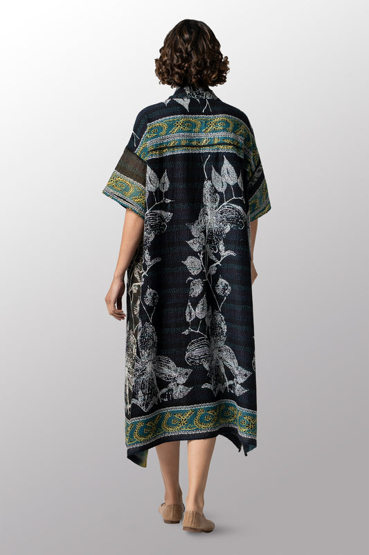 ORGANIC LEAVES KANTHA WING COLLAR DRESS - ol2454-blk -
