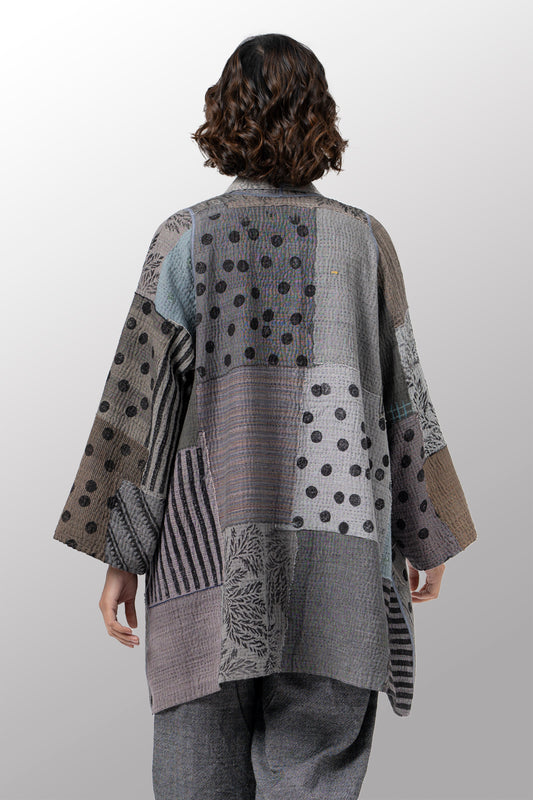 FRAYED PATCH KANTHA A-LINE JKT - fi4003-gry -