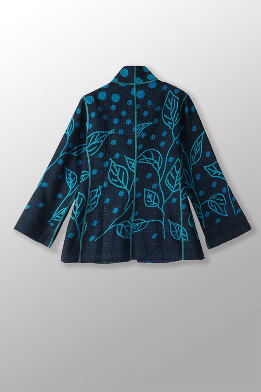 POLKA DOTS & LEAVES KANTHA SHORT JACKET - dl4007-tuq -