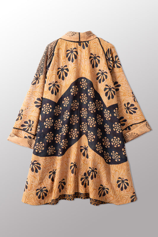 COTTON OVERDYE KANTHA WRAP FLARE COAT - ov4330-ctel004a -