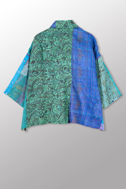 VINTAGE SILK KANTHA CROPPED TENT SHIRT - sv2596-0001a -