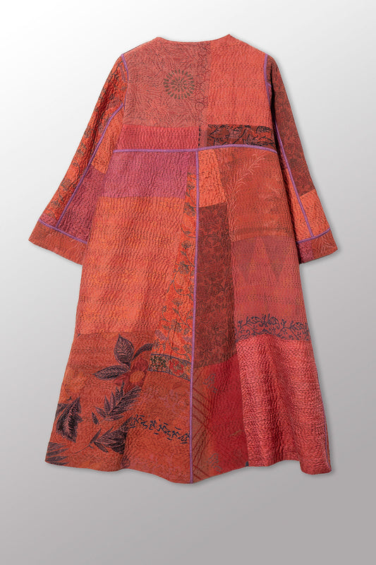 GEORGETTE JACQUARD VINTAGE SILK PATCH KANTHA WRAP FLARE COAT - gj4330-org -