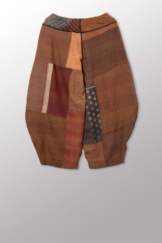 BROCADE PATCHED KANTHA HAREM PANTS - bp2605-brn -