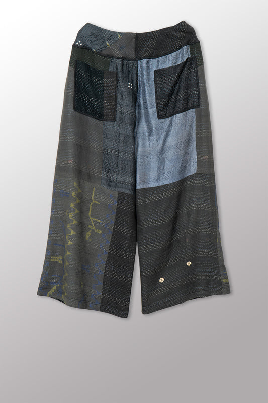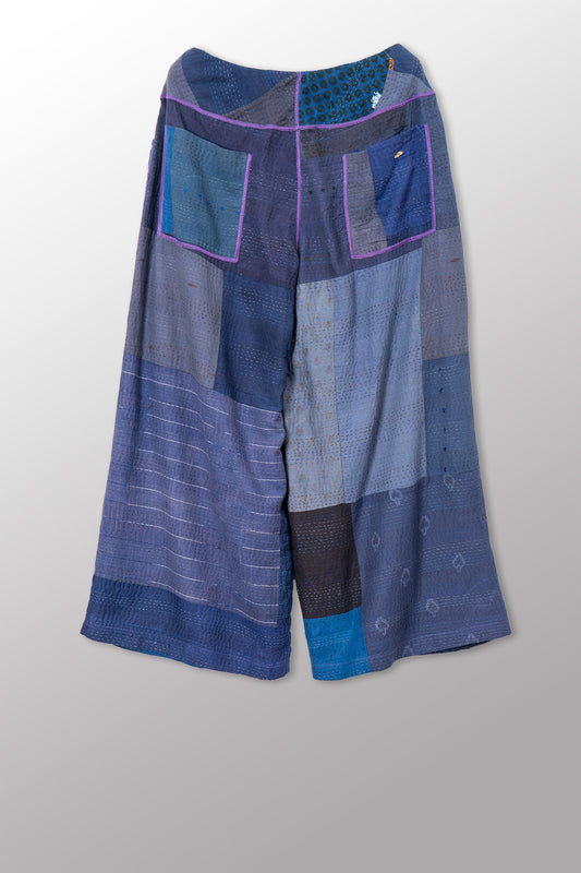 BROCADE PATCHED KANTHA MID RISE WIDE LEG PANTS - bp2665-blu -