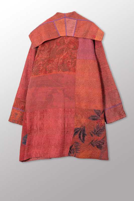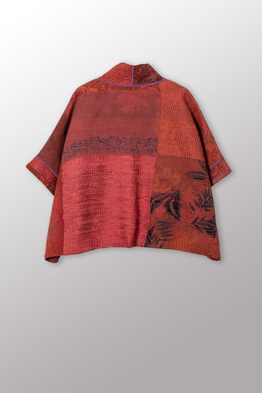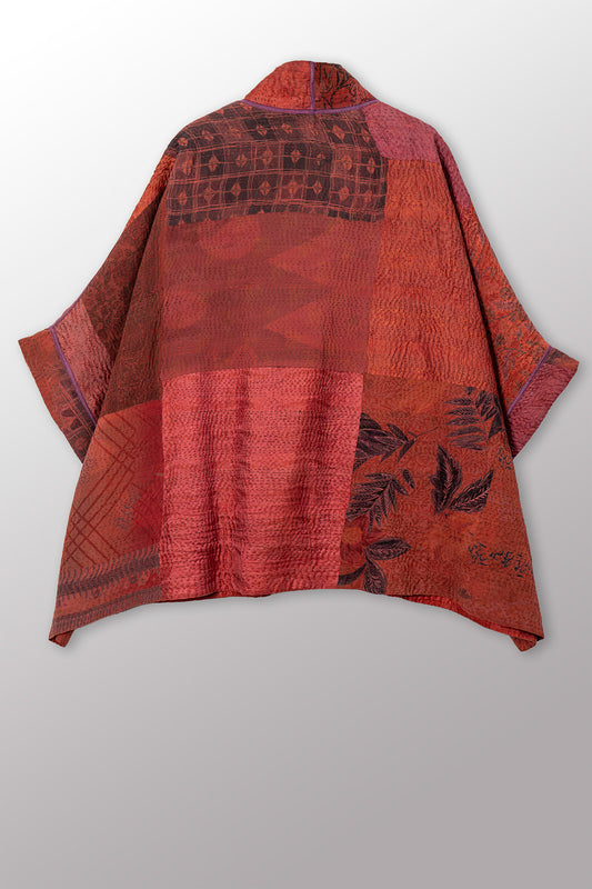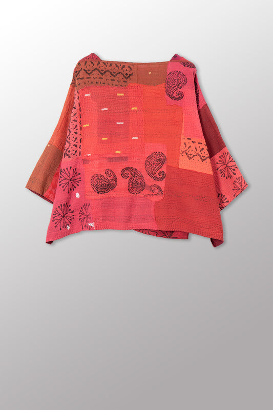 LANDSCAPE FRAYED PATCH KANTHA WITH STAMP A-LINE JKT - sp-lf2003-red -