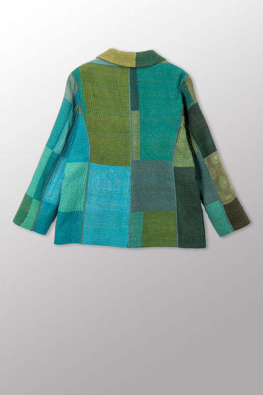OMBRE PATCHED KANTHA BASIC JACKET - op4052-grn -