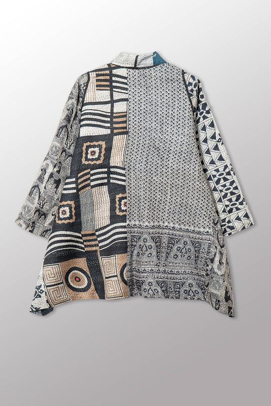 VINTAGE SILK PATCH KANTHA A-LINE JKT - vp2003-blk -