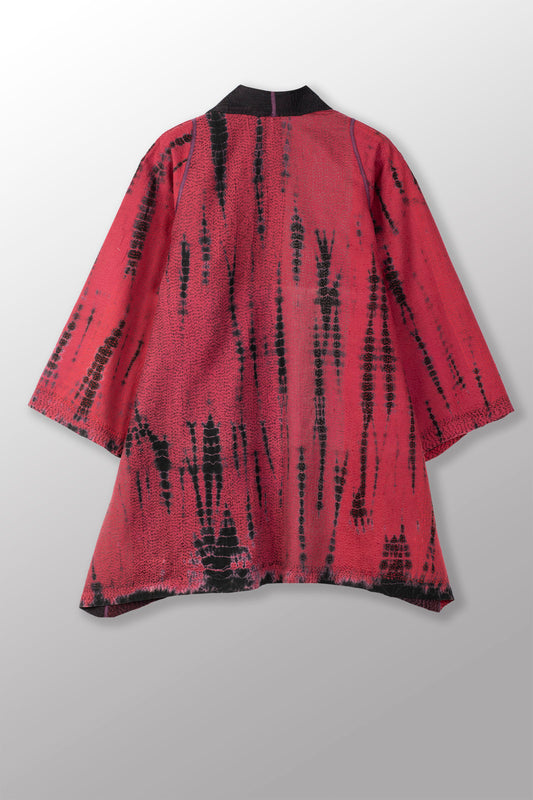 WOVEN HANDLOOM IKAT WITH OMBRE KANTHA POCKET MEDIUM COAT - wh4316-red -