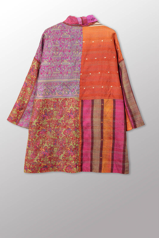 VINTAGE SILK KANTHA POCKET MEDIUM COAT - sv2316-0008m -