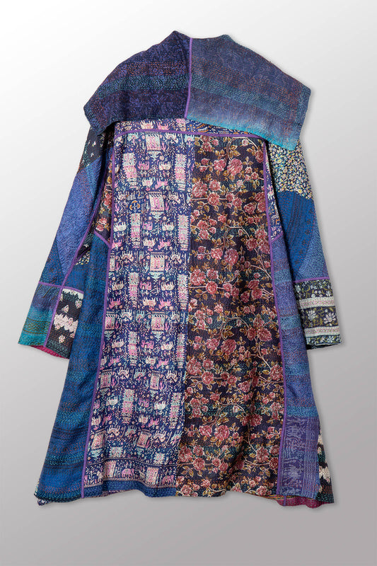 VINTAGE SILK KANTHA A-LINE LONG COAT - sv2302-0091a -