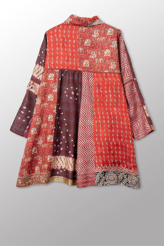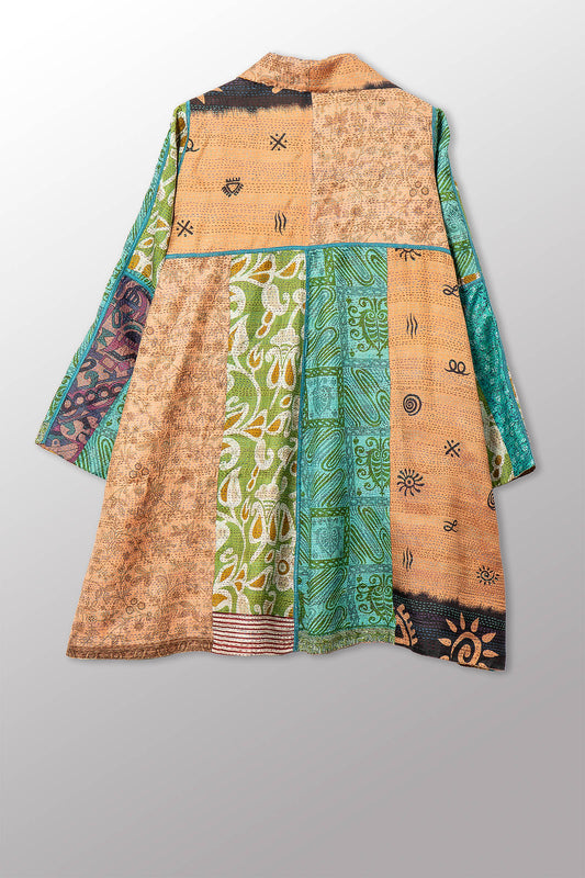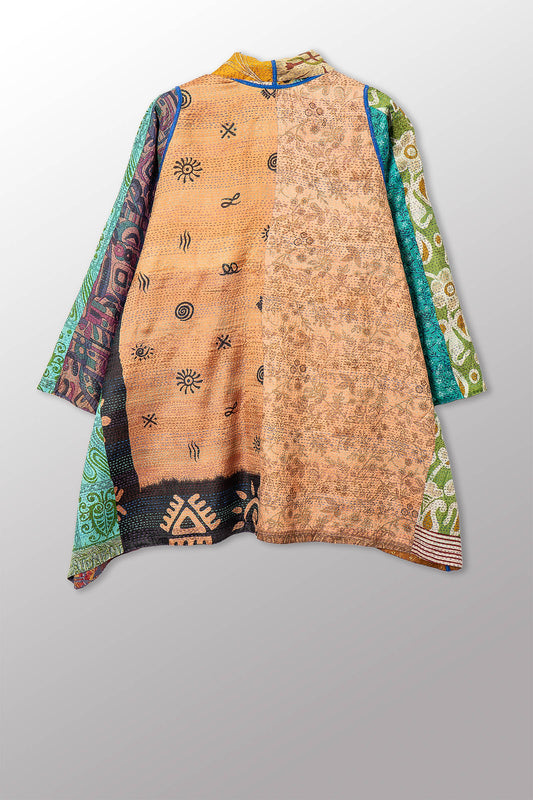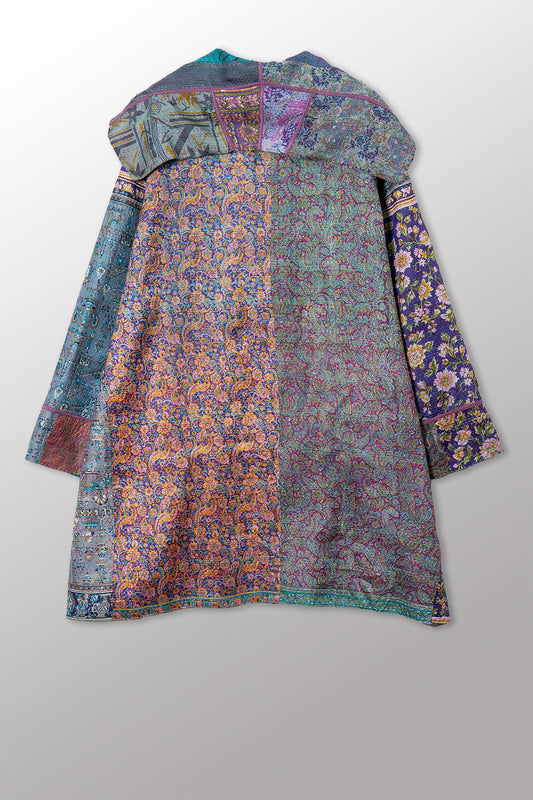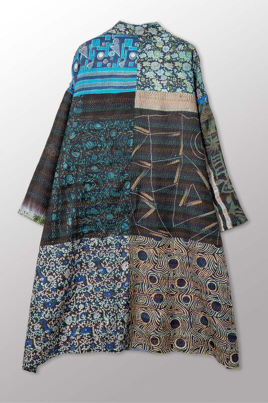 VINTAGE SILK KANTHA A-LINE DUSTER - sv2311-0015a -