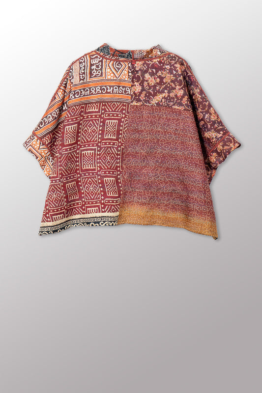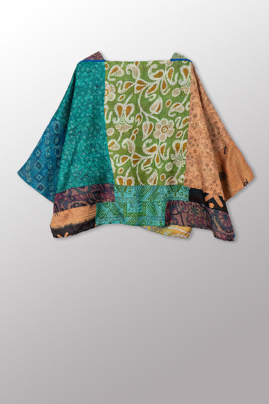 VINTAGE SILK KANTHA MINI PONCHO - sv2060-0013a -