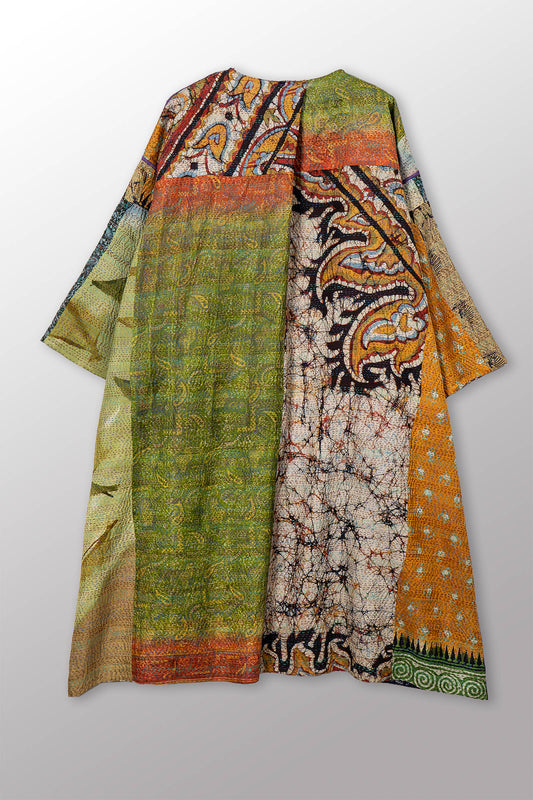 VINTAGE SILK KANTHA LONG DUSTER - sv2328-0014a -
