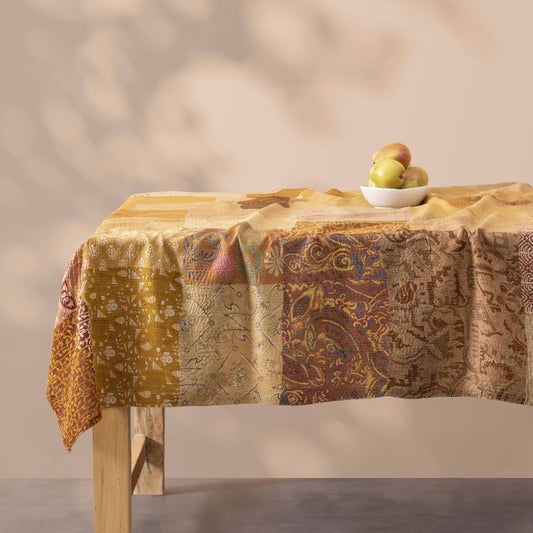 Printed Fray Vintage Cotton Kantha Table Cover -Golden-