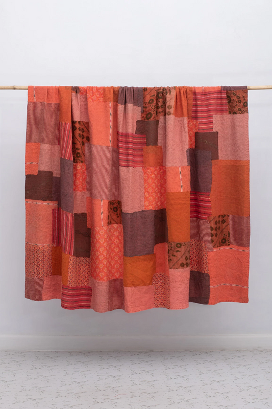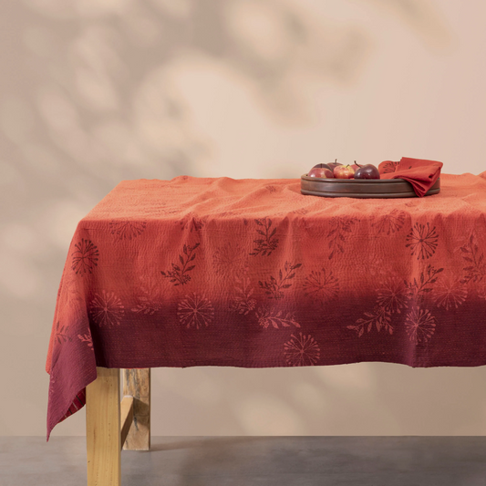 Vintage Fray Patch & Ombre Kantha Table Cover -Carrot -