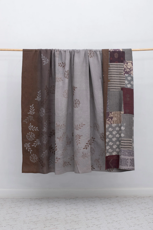 Vintage Fray Patch & Ombre Kantha Table Cover -Chocolate -