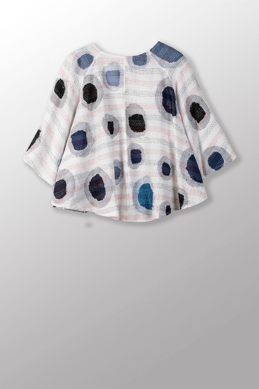CUT OUT KANTHA SHIRT PONCHO - ck2545-blu -