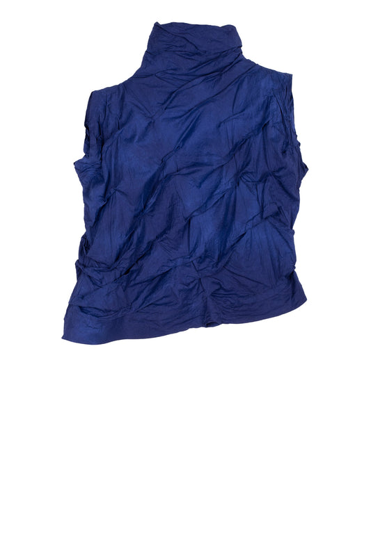 DYED COTTON SILK HEAVY VOILE WAVY TUCK SHELL TOP - dh1553-blu -