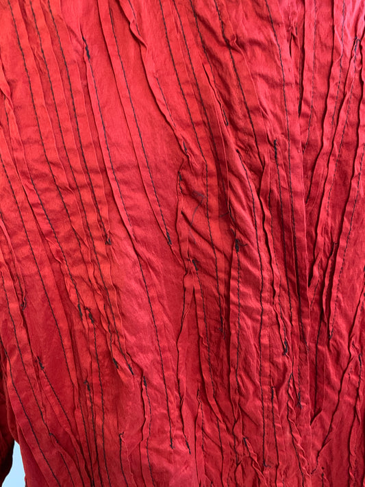 DYED COTTON SILK HEAVY VOILE RANDOM TUCK HIGH-NECK BLOUSE - dr1563-red -