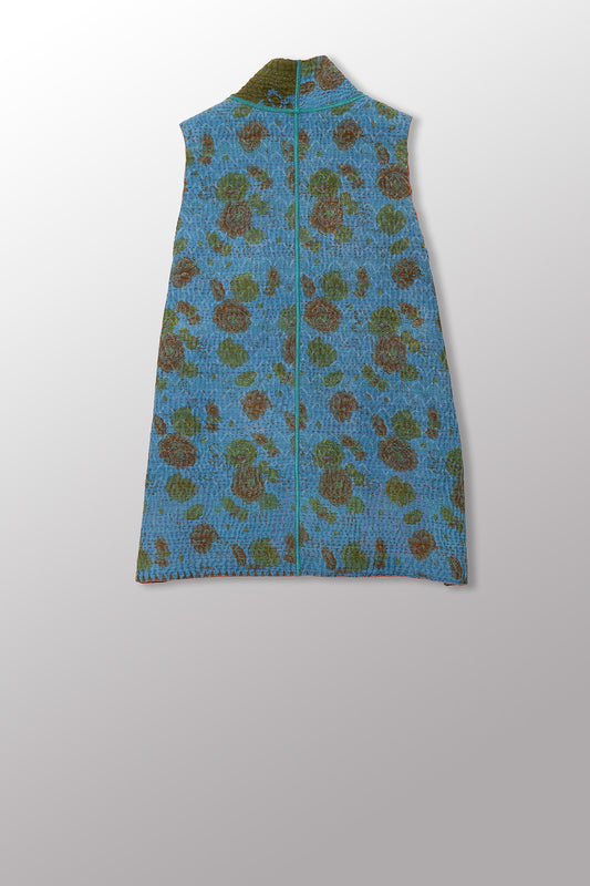 VINTAGE SILK KANTHA BACK PLEATED VEST MAXI - sv2222-0008a -