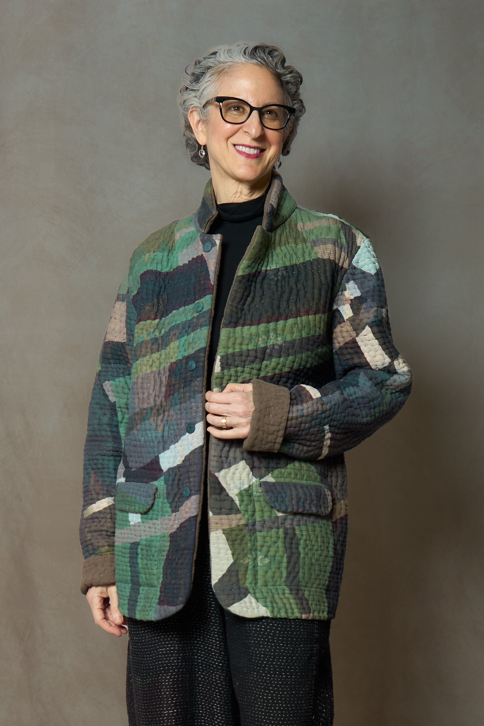 ABSTRACT AND DUCK CLOTH KANTHA SIMPLE MEN'S JACKET - ap5072-grn -